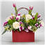 描述: 玫瑰、郁金香、星辰花、卫矛以和时令绿叶组成、样式如图。