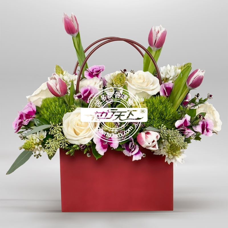 玫瑰、郁金香、星辰花、卫矛以和时令绿叶组成、样式如图.