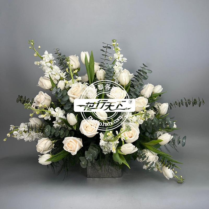 描述: 郁金香、玫瑰、紫罗兰和时令植物组成、样式如图。
